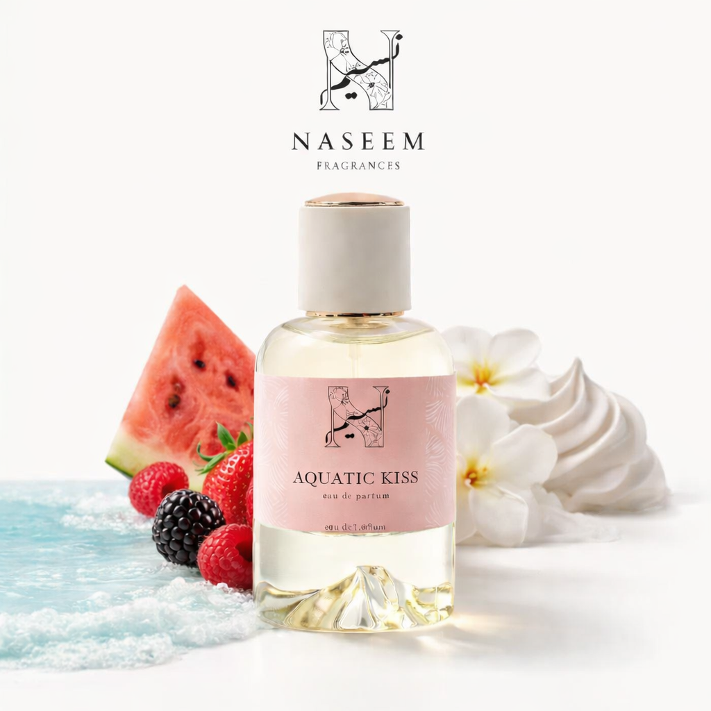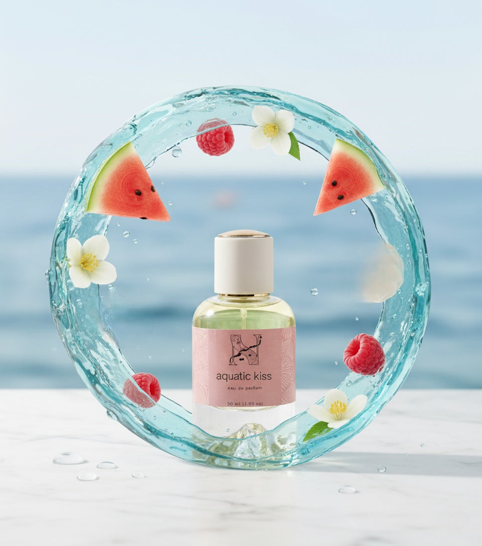 Aquatic Kiss blends salty freshness with soft florals and juicy fruits — your summer escape in a bottle.